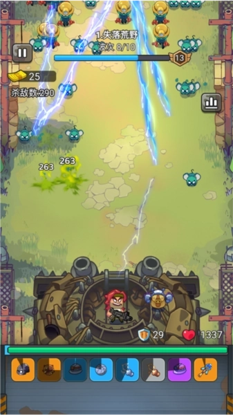 这个搭配的特点在于覆盖了不同类型的武器,兼具范围伤害与单体输出能力,能够适配各类战斗场景。其中雷符和闪电矛可带来雷电属性的持续伤害效果,冲锋枪与激光棒适合快速清理小怪,而火箭筒和卡车则能在关键节点打出高额伤害。