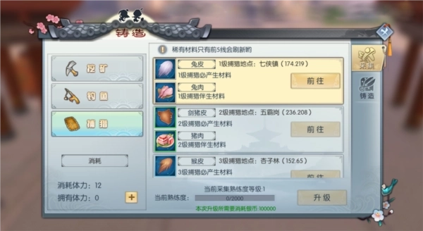·成功捕猎后会提升熟练度,从而对更高等级的猎物进行捕猎;