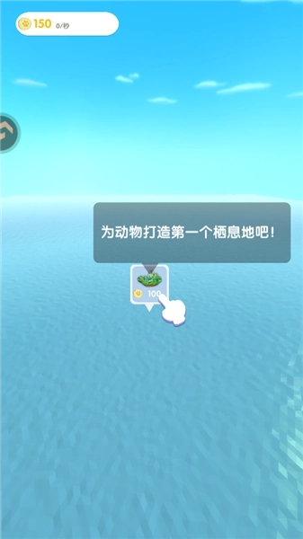 1、在本站打开小小绿洲游戏,进入游戏后映入眼帘的是一片空旷的海域,接下来我们需要按照教程指引,为动物搭建它们的第一个栖息地。