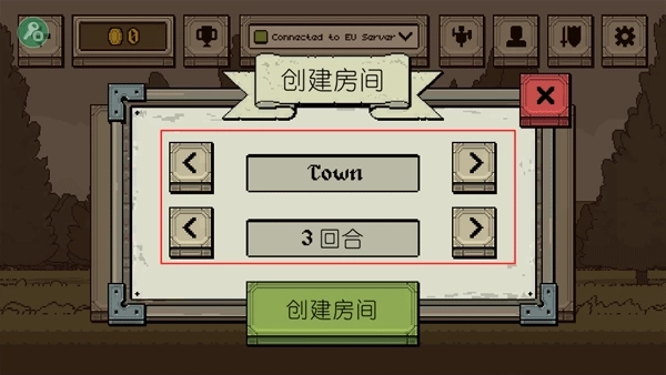 创建房间的操作流程是:先选定战斗的场地以及回合制的模式,之后点击创建按钮就完成了。