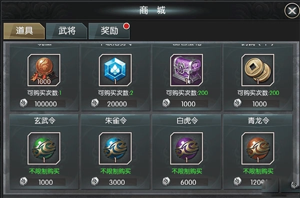 完成轮回后,能够得到轮回勋章与王者勋章,其中轮回勋章可用于在轮回商店兑换武将碎片以及天子神装。