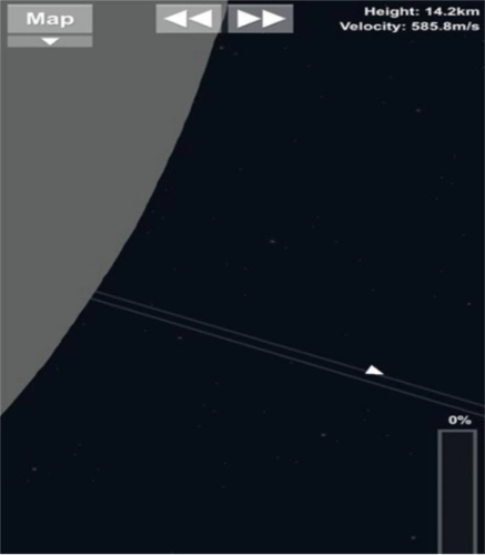 4、接着打开地图查看火箭的轨迹是否接近月球轨道,随后将用完的四个氮气桶分离。