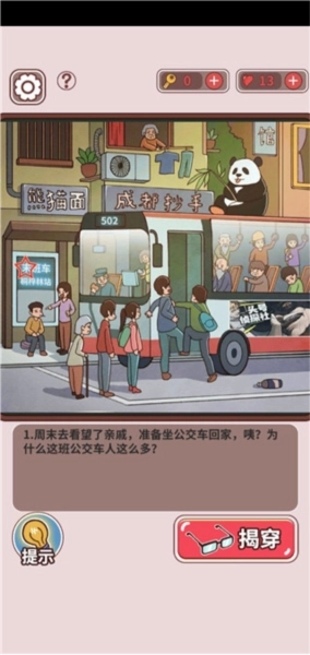 第二十三关:点击公交站牌上的末班车信息,点击公交车身的广告,点击公交车门口拉扯的两人中的任意一人,点击站着的老爷爷,点击坐着的年轻人李华,即可过关。