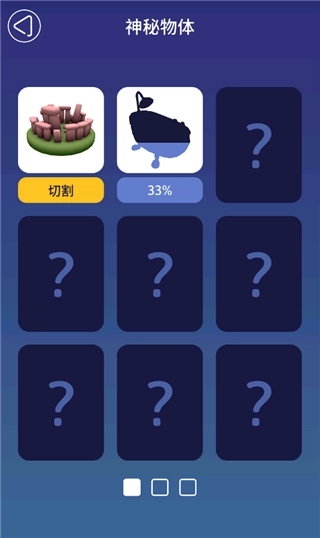 4、点击小刀图标下方区域,还能查看神秘问题收集的预览内容;对于已收集到的物体,我们可以进行切割操作。
