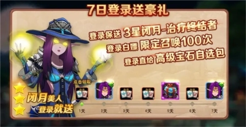 总共能拿到100次限定召唤机会,还有3星稀有英雄以及高级养成道具!