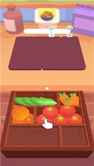 3、轻松滑动你的手指来切菜,并填装到锅子中,或者是榨汁机中,由你来决定最后的成品。