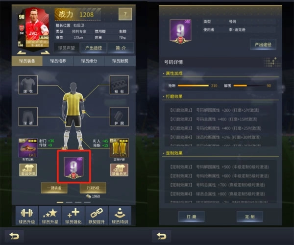当我们看到那些熟悉的号码,脑海里总会浮现出球员们在球场上挥洒汗水的模样——现在,你也能为麾下的球员挑选专属号码了!只需进入装备界面,点击人物下方的方框,就能开启号码设定流程。定制专属号码不仅需要你心仪的号码道具,还得搭配专属证明来完成合成,同时可以根据需求选择合适的属性加成。而这些合成所需的材料,都能从接下来要介绍的“巅峰对决”玩法中获取哦。