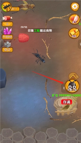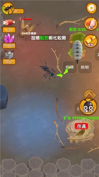 3、把食物搬运妥当后,玩家要将这些食物投喂给蚁后,让它用来孵化蚁卵;