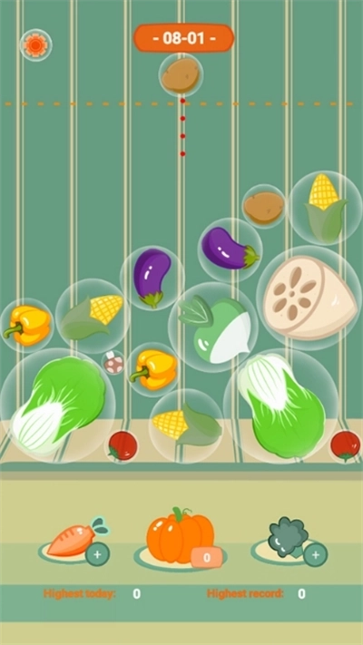 1、玩家可通过点击或滑动屏幕,将相同等级的蔬菜合并升级,玩法轻松且充满策略性,适合各年龄段人群体验。