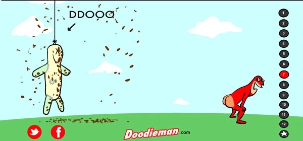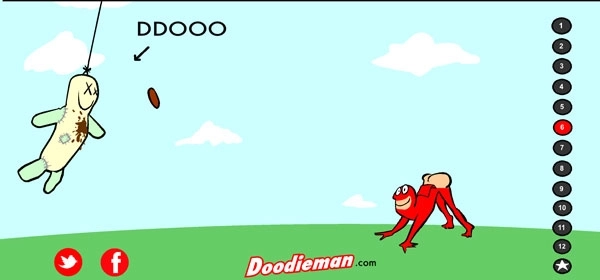 3、设置好后,点击右侧1-10按钮,玩家可操纵大便超人释放大便攻击人偶;