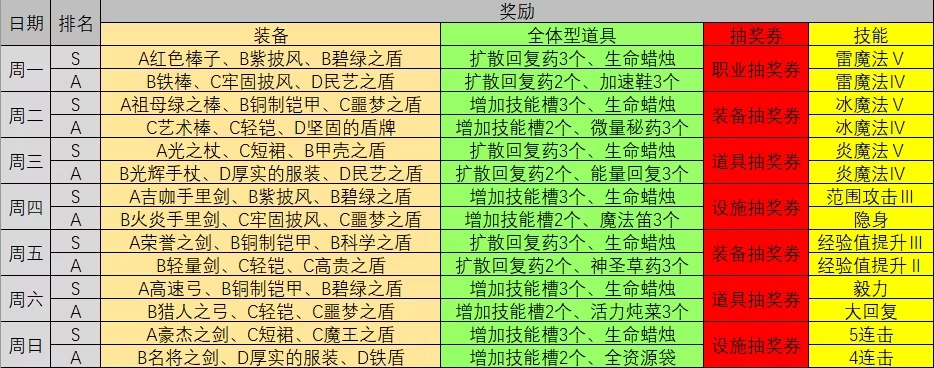 首先是每日排名奖励机制,玩家每天能通过参与战斗积累分数,系统会在每晚23:00依据分数排名情况发放对应奖励。奖励共划分为F、E、D、C、B、A、S七个等级,通常等级越靠后,对应的奖励内容就越丰厚。不过在游戏前期,玩家想要拿到A、S级别的奖励难度较高,而且低排名之间的奖励差异并不算大,所以前期只需尽力参与即可。等到游戏进入中后期,玩家解锁传说洞、混沌之岩这些玩法后,刷取分数会变得轻松不少,这时大家往往会更关注A、S级别的奖励内容,下面就为大家列出每日A、S级别排名对应的奖励详情: