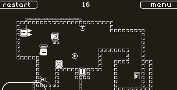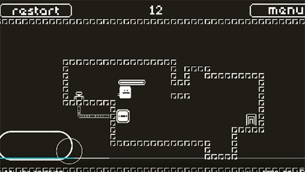 7、第16关,先滑过去,把第一个箱子推到左边触发机关,之后可以用自身血条承接被推落的箱子,再借助升降平台和物理引擎的作用,先让箱子滑到右侧,最后将箱子推到入口位置即可。