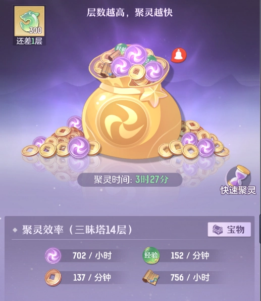 游戏里设有“低保”机制,帮助玩家获取基础资源用于给妖灵和灵师发放薪资~地图上分布着数座真灵塔,每座塔都镇压着独特的妖灵(背后也藏着各异的故事)。玩家击败每一层的妖灵后,就能提升挂机收益,这样即便不在线,也不用发愁背包里没有资源啦!