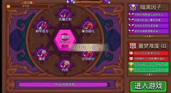 天赋【巨大化】:体型提升20%——并非只有人物本身变大,连带着所有攻击特效、卡牌魔盒的效果特效都会同步放大。体型与特效的变大直接带来攻击范围的扩展,无需担忧变大后更易被敌人弹幕命中,因为你的护盾也会随之增大,此外还有其他天赋提供额外保障。