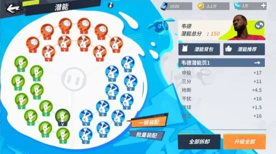 这套潜能的核心作用是强化韦德的中投能力与力量属性,再结合动能系统提供的盖帽增益,能让他更高效地协同队友完成协防任务,同时提升中距离得分的稳定性。