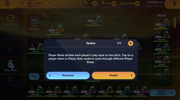 除了阵型之外,球员角色也决定着个人在场上的作用方式。一名中场球员既可以是负责抢断的核心力量,也能成为回撤到本方禁区边线附近的跑动型球员,还可能是位置靠后的组织型球员。比赛过程中调整角色,或许能拯救状态低迷的球员——比如把抢点型前锋改成支点型,或许能更充分发挥其空中争顶的优势。而在训练时,定期尝试不同角色,并留意它们对球队化学反应与整体表现的影响,也是很有必要的。