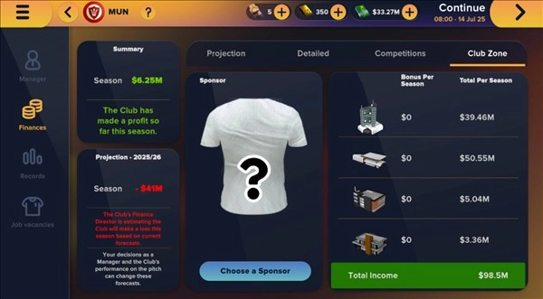 财务管控和战术策略具有同等重要性。薪资发放或转会投入一旦超出合理范围,就可能造成亏损,进而引发董事会的不满情绪。财务面板能够清晰呈现门票收入、商业营收、奖金收益以及各项支出的详细构成。要时刻关注赛季财务预测——若预测结果显示将出现亏损,就需及时调整支出结构,或是争取与更具实力的赞助商达成合作。在俱乐部合作区域挑选合适的赞助商,能够有效提升俱乐部的年度收入水平。
