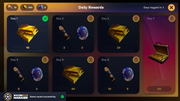 持续获取免费资源能让你的成长之路更顺畅。每日福利包含金币、礼包以及增益效果。任务会指引你完成训练、赢得比赛这类实用操作,还会给予奖励货币。哪怕没时间参与比赛,每日登录也能保证你稳步提升。累计登录到第7天,你就能领取高价值奖励,为你的球队带来明显助力。