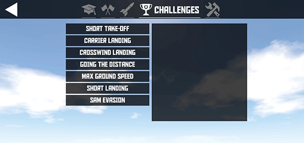 还有挑战模式,包含短距起飞、舰载机着舰、侧风着陆、长途飞行等玩法;