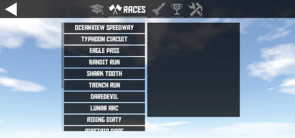 点开竞速模式,里面包含海景高速、台风巡回、雪人争夺战等赛道。