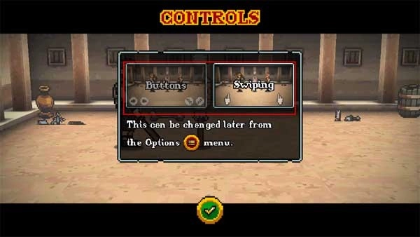游戏开始后,第一步是挑选你偏好的操作模式,有键盘式和手动式两种可选,选好后点击下方的对钩按钮确认。