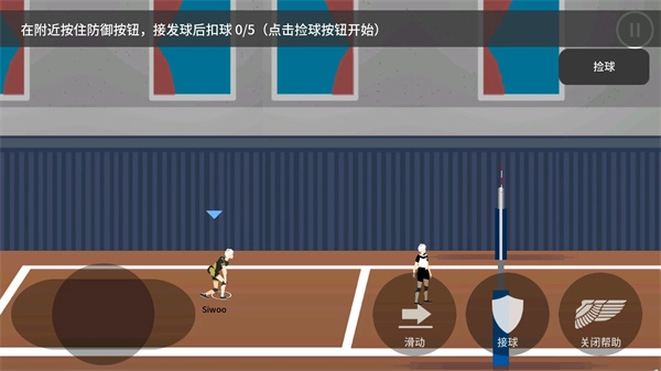 在球的附近点击防御按钮就能完成接球动作,不过接球之后还需要执行扣球操作。