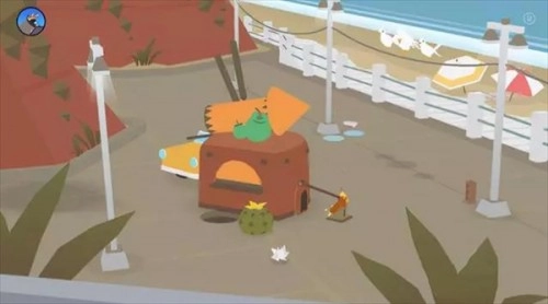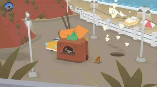7、大鸟旁边的篮子里装着玉米,旁边还有一堆火。掉下来之后一起吃掉,地洞就又会冒出很多爆米花。