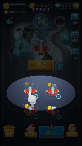 进入游戏后,得先点击下方的按钮,花费金币购买飞机。
