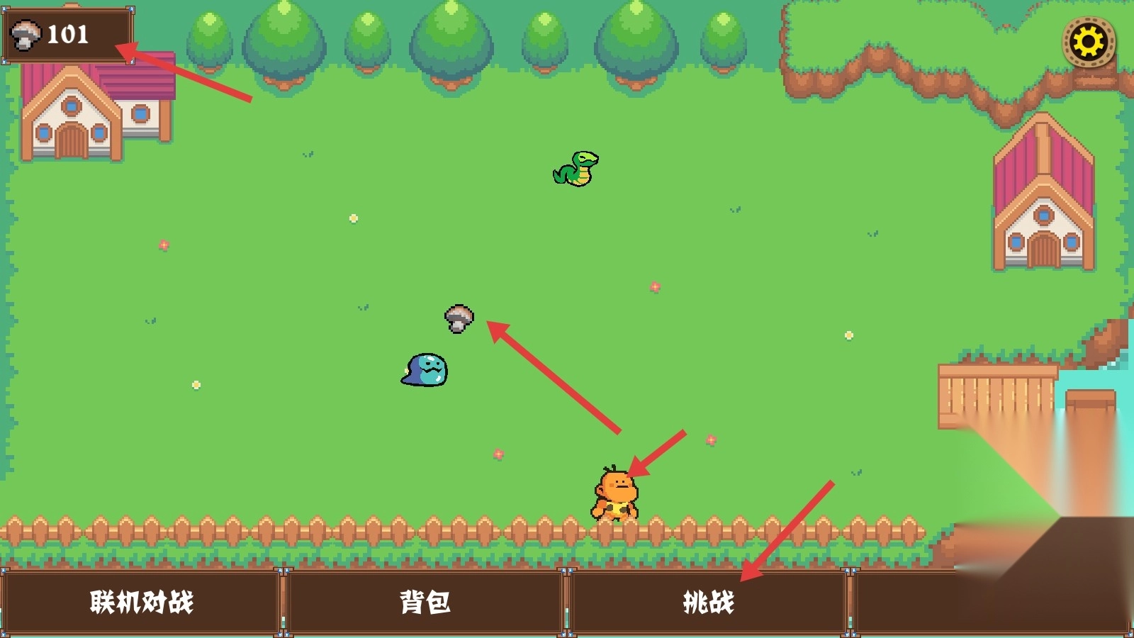 2. 在游戏里操控角色移动并拾取蘑菇道具,之后点击挑战按钮参与对战