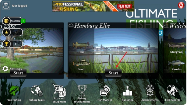 1、启动终极钓鱼模拟器游戏后,第一步是挑选一处合适的水域,开启你的钓鱼旅程。