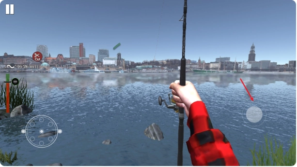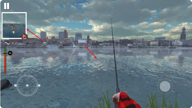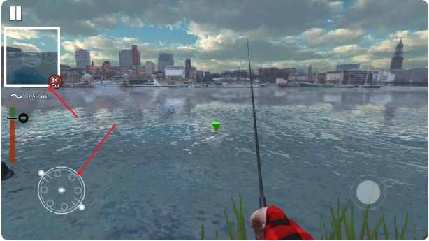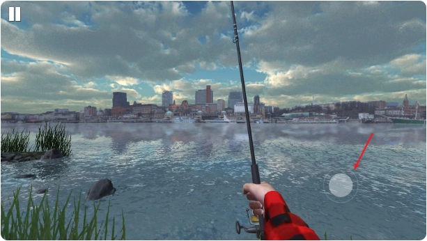 3、通过拖动右侧的虚拟摇杆来选择垂钓的具体位置。