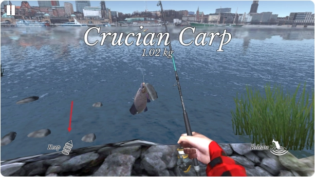 高度拟真的钓鱼体验,包括渔具搭配、看漂、遛鱼控鱼、鱼挣扎逃跑等动作与力量感,适合钓鱼爱好者和入门小白。