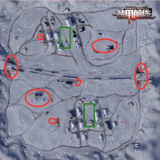 2、在地图策略方面,该模式的核心要点是隐蔽与转移。接下来我给大家列举几个适合藏身的位置(像桥洞区域),这些位置已用箭头清晰标注。建议大家不要彻底进入封闭区域,要确保自己能灵活进退。要是遇到实力差不多的敌人,可以果断发起攻击;要是敌人实力悬殊,那就优先考虑撤退。红色标记的是推荐的藏身处,绿色标记的则是高危区域,这些地方很容易遭受多方向攻击,大家应尽量避开。