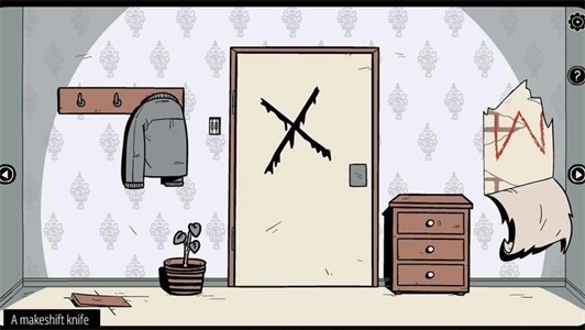 8、用钥匙打开抽屉拿走手套,割开右边墙壁纸,打开封住的柜子获得钥匙和开关。