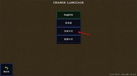 2、点击后选择简体中文,就能把游戏设置成中文版了。