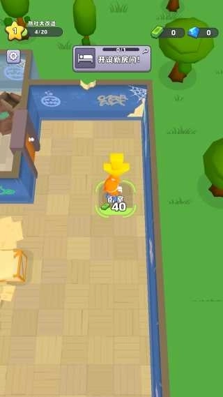 先进行拆除清理的打底工作,借助锤子、电钻这类虚拟工具,点击操作来拆除旅社里破损的墙壁、老旧的家具以及装饰,接着清扫剩下的垃圾,其中部分旧材料能够回收利用,以此节省初期的资金。