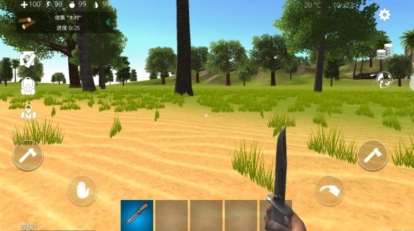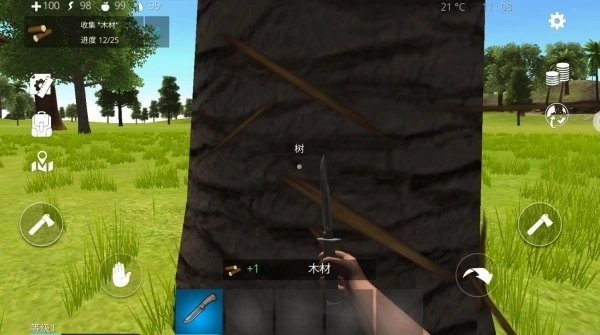 3、在场景里自由探索,左上角显示着任务,要求收集到25份木材。