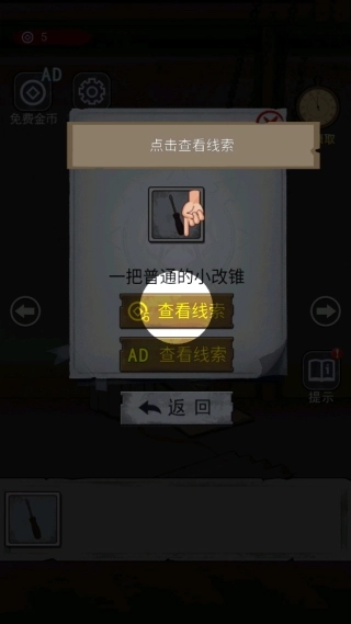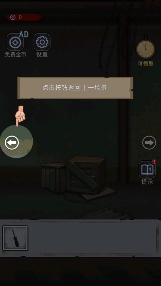 6、然后选择返回上一个场景,在背包中选中改锥。