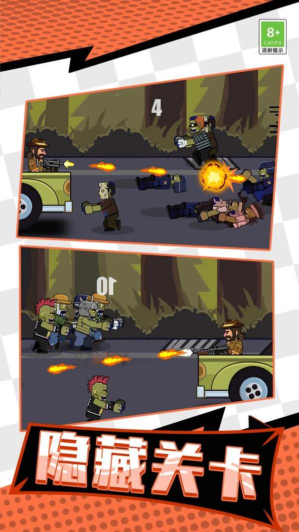 牛仔打僵尸是一款竖版画面的射击,卡通风格的游戏挑战,不断地壮大自己的队伍的阵容和实力,轻松就可以赢得游戏的胜利,射击就可以轻松的挑战,游戏还可以获得很多的资源,游戏将会变得更加的强大,游戏的武器种类还是比较的丰富的,视觉效果比较的强的,快来试试吧!