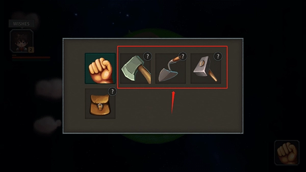 若想打造更多实用的工具,玩家得先去收集所需的各类资源。不过部分资源得用特定工具才能获取,像敲石头得用锤子、砍木材得用斧子这类,而这些工具本身都能通过制作获得。具体操作的第一步,就是点击星球表面的帐篷。