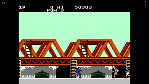 本作的操作采用基础虚拟按键设计:A键为特殊武器键,可发射火箭弹、投掷手雷或用手枪射击(未持有武器时无法使用);左右方向键控制角色移动,在平地能完成原地跳、向前跳和向后跳,处于楼梯区域时则可进行上下攀爬与趴伏动作;B键是匕首攻击键。在红白机版本里,连续按下B键能触发快速刺击,这是应对敌人的可靠战术。热衷于这类横版动作游戏的玩家,千万别错过这款作品。