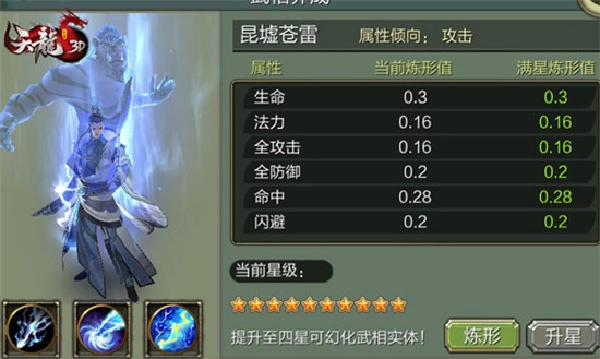 到了后期,武相的8星技能所带来的百分比加成,能让武魂属性得到显著提升,同时当武相达到最高炼形值时,角色属性也会获得大量加成,从而大幅提高战力。