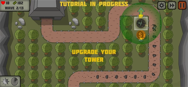 4.当你拥有充足的资源时,就能够对炮台进行升级,升级后的炮台能对敌人造成巨大伤害。