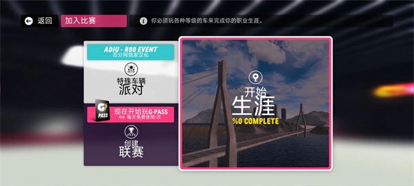 4、点击“加入比赛”,你既可以自行创建赛道,也能挑战车手职业生涯。