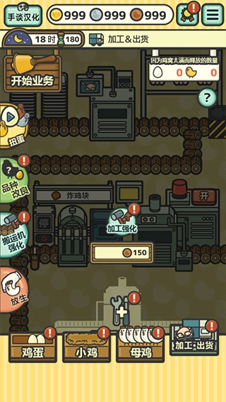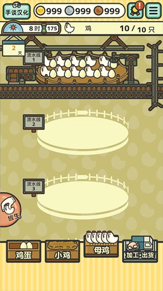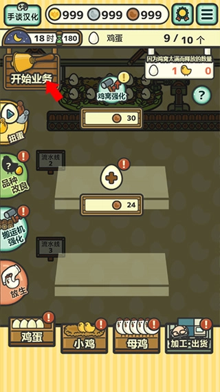 2、到了夜间,就能够对流水线进行强化或新建,还可以增加商品种类、改良小鸡的品种。