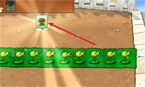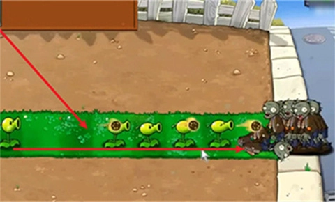 3、然后在草地上放一排豌豆射手攻击入侵的僵尸。