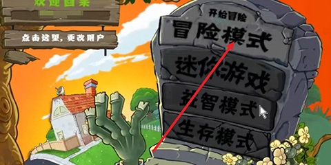 1、打开植物大战僵尸e版支线点击冒险模式进入。