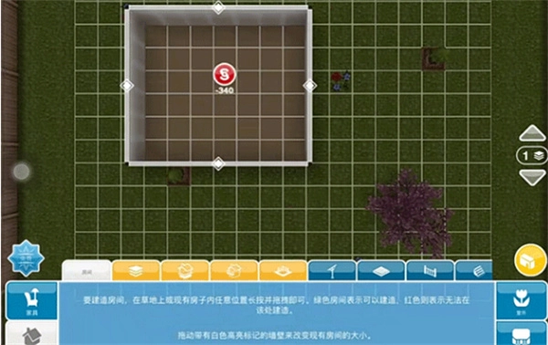 7、快速拖动一下,即可设定房子的尺寸,还能摆放一些家具。
