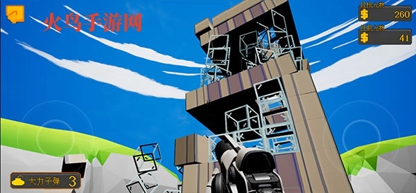 你需要完成的任务是破坏前方的建筑,在屏幕任意空白处点击就能发射弹药,调整发射角度让弹药命中带有特殊标记的区域。