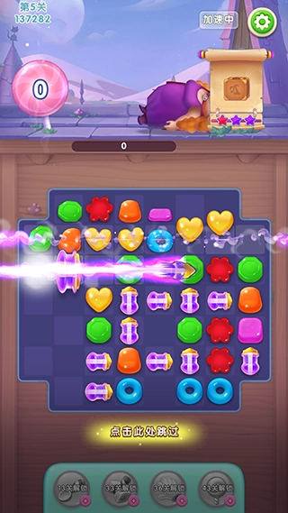 2、尽可能实现4连消与5连消,生成特殊糖果乃是通关获取高分的关键所在。